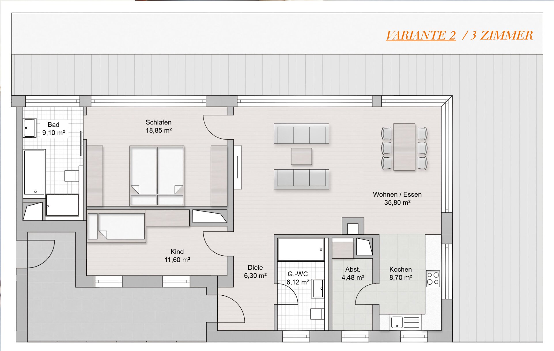 Terassenwohnung Nr. 7 - 2.OG ca. 109m² = 348.800 €